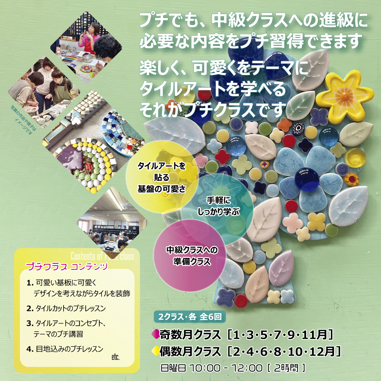 楽しく、可愛くをテーマにタイルアートを学べるそれがプチクラスです。