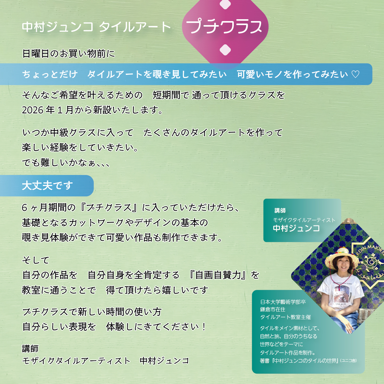 【奇数月】2026年 中村ジュンコ タイルアート プチクラス