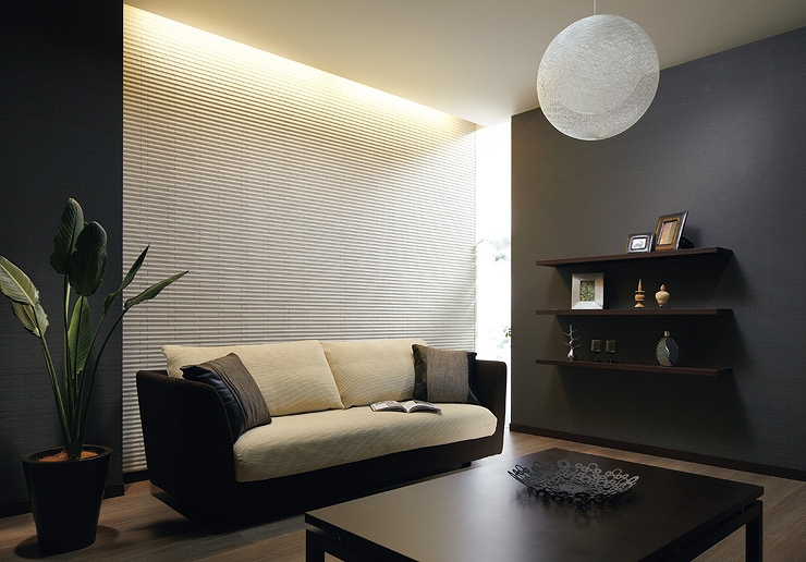 横筋のレリーフが特長です。光により陰影が強調され、贅沢な空間を演出します。