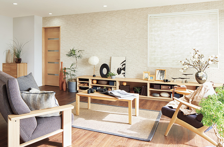 土もの調の素材感により、ナチュラルな空間を演出します。
