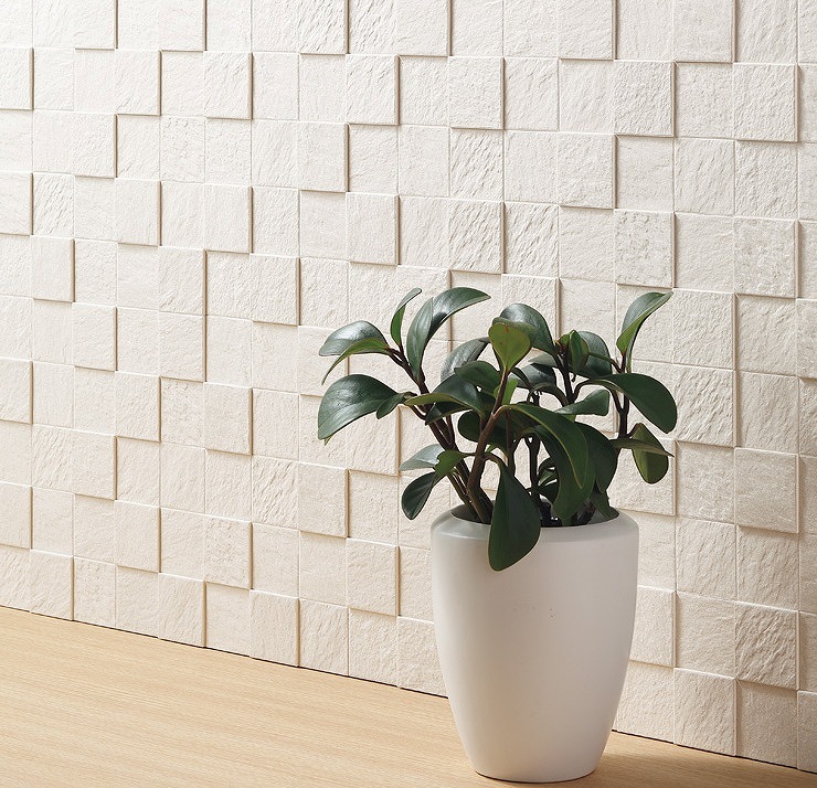 ナチュラルな石面凹凸デザイン。ライティングによる陰影が美しい壁面を演出します。