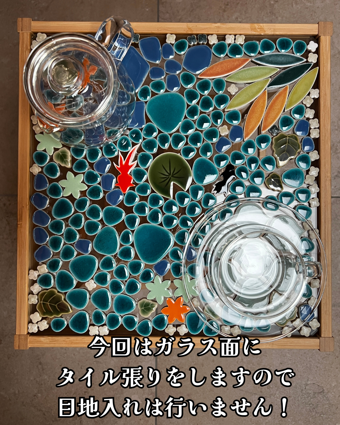 仕様:ガラス天板へタイル直貼り/目地なし(透明感と立体感を最大化)