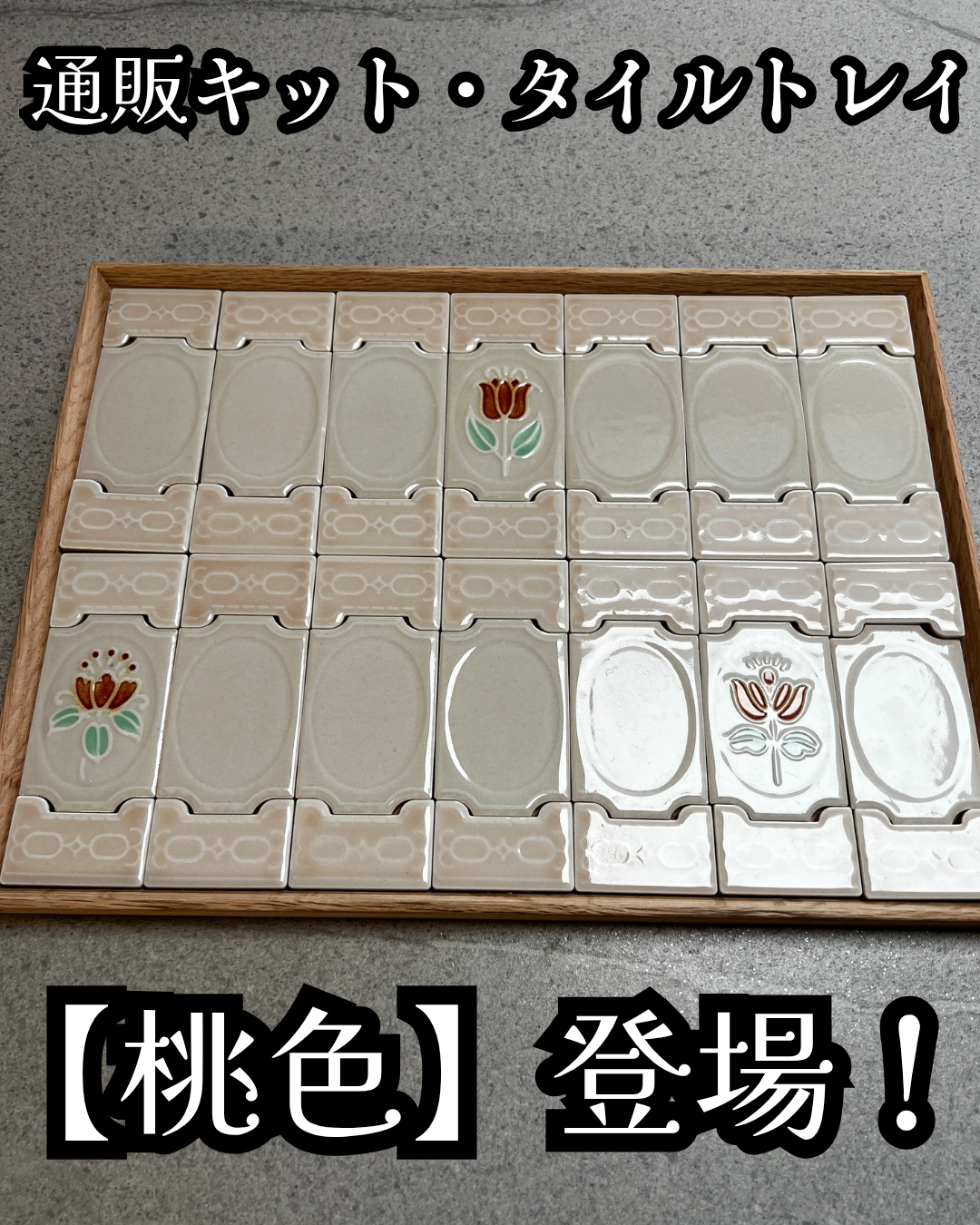 【DIYキット】昭和レトロタイル・トレイ(桃色)