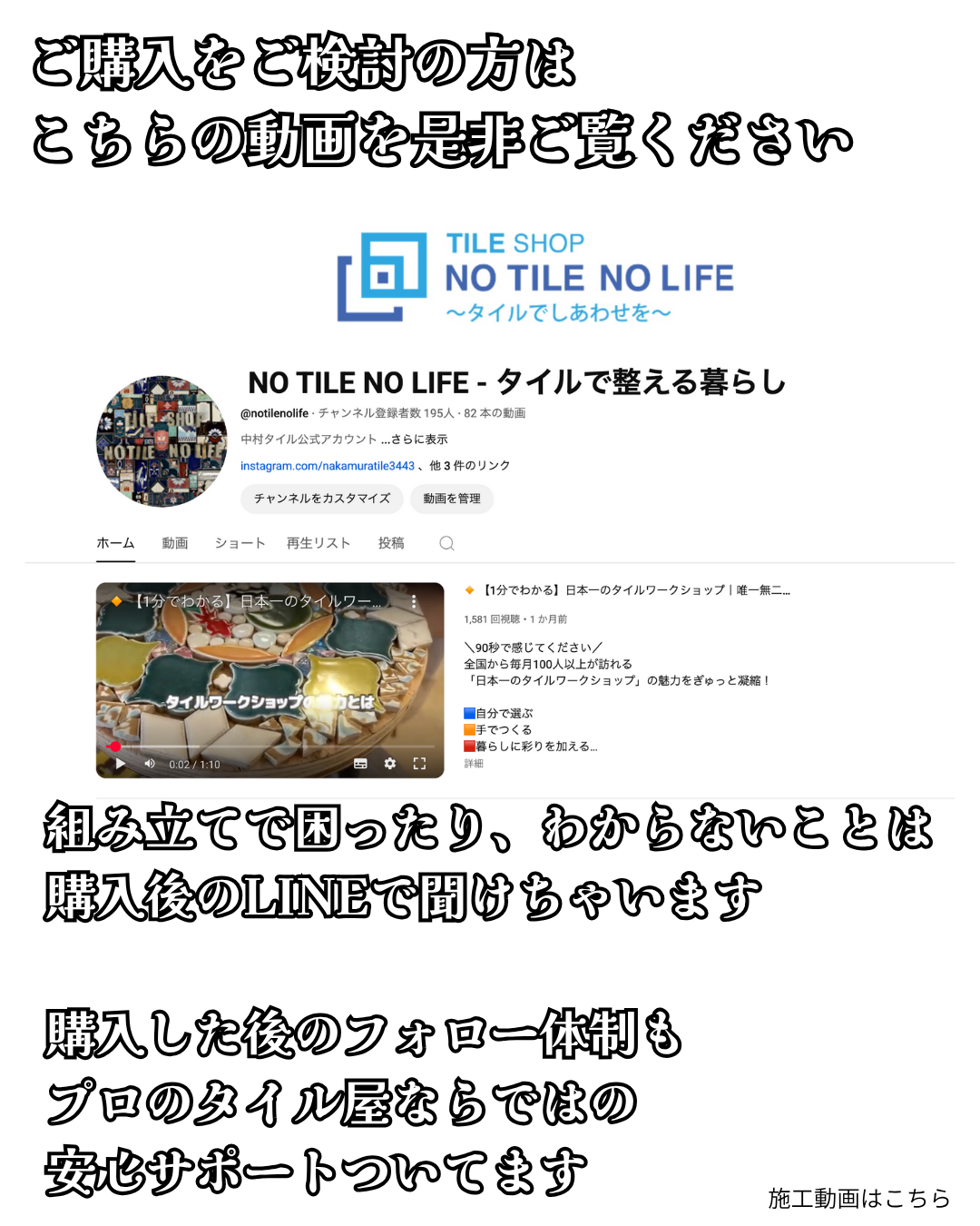 ご購入後のサポート体制も、プロのタイル屋として全力で整えました。