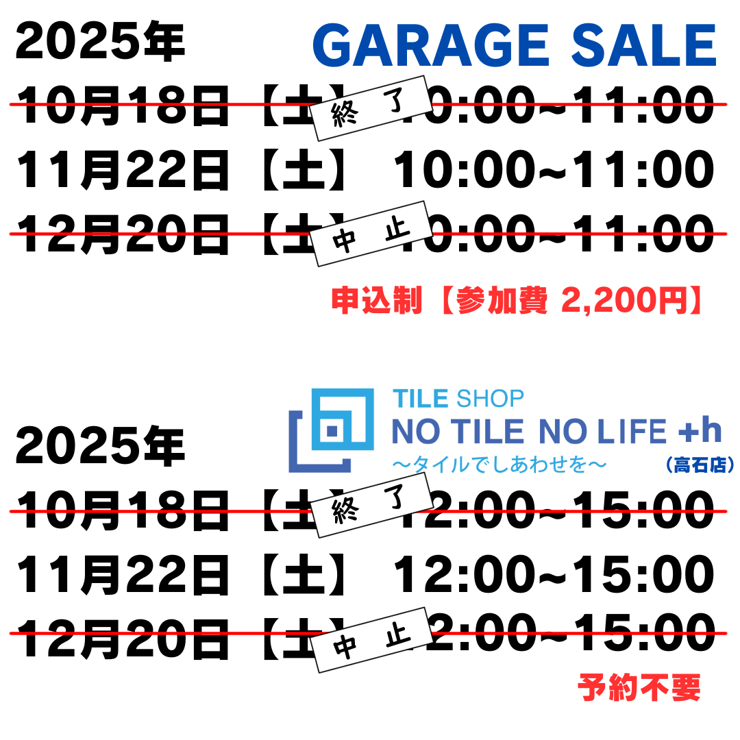 ガレージセール参加者の方は開催中(10:00~11:00)にタイルショップ+h(高石店)にて商品をご購入いただけます。
