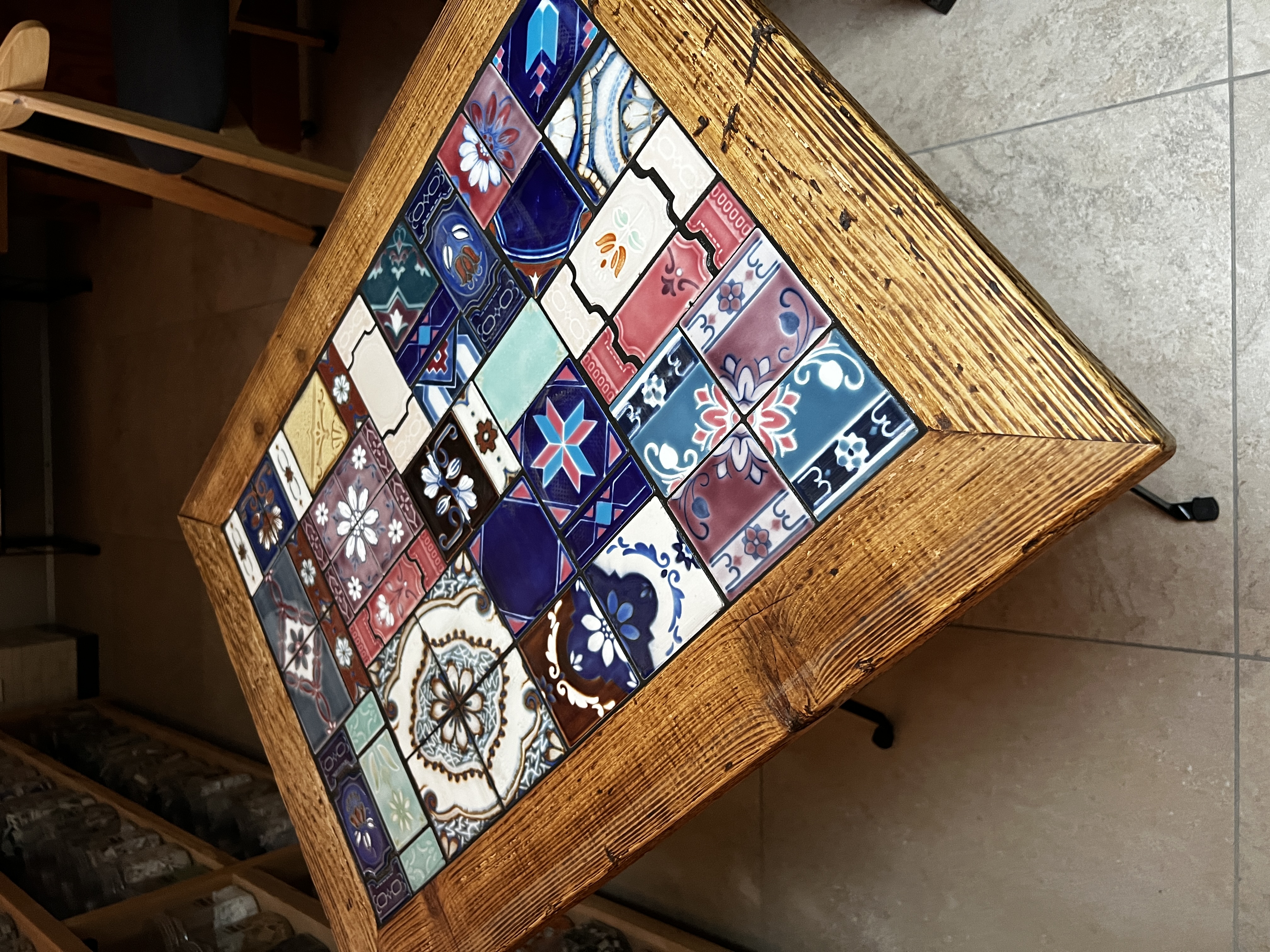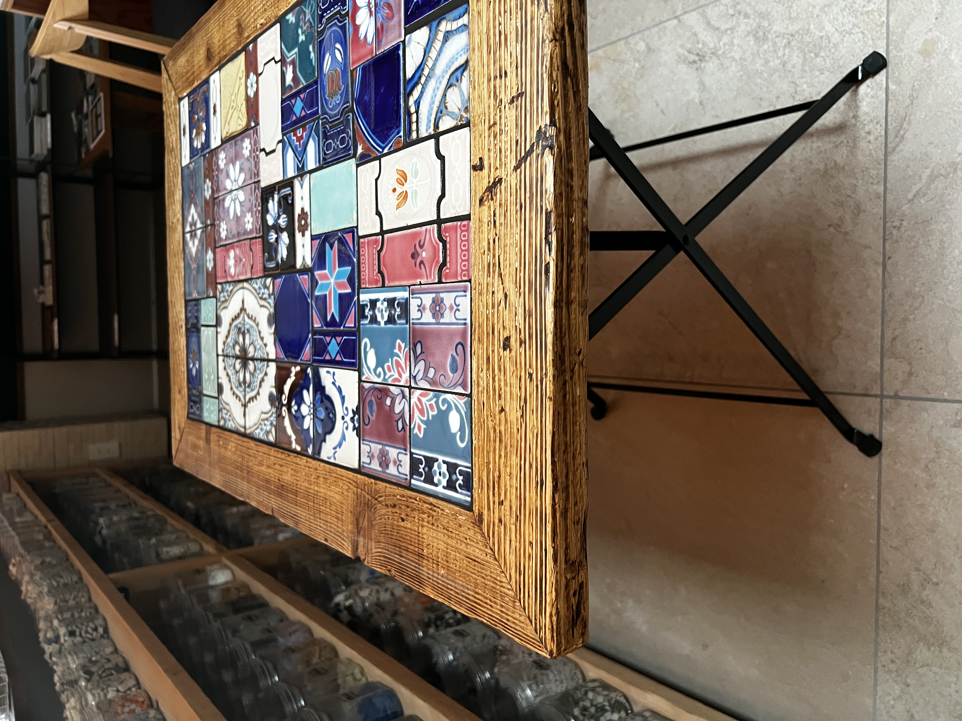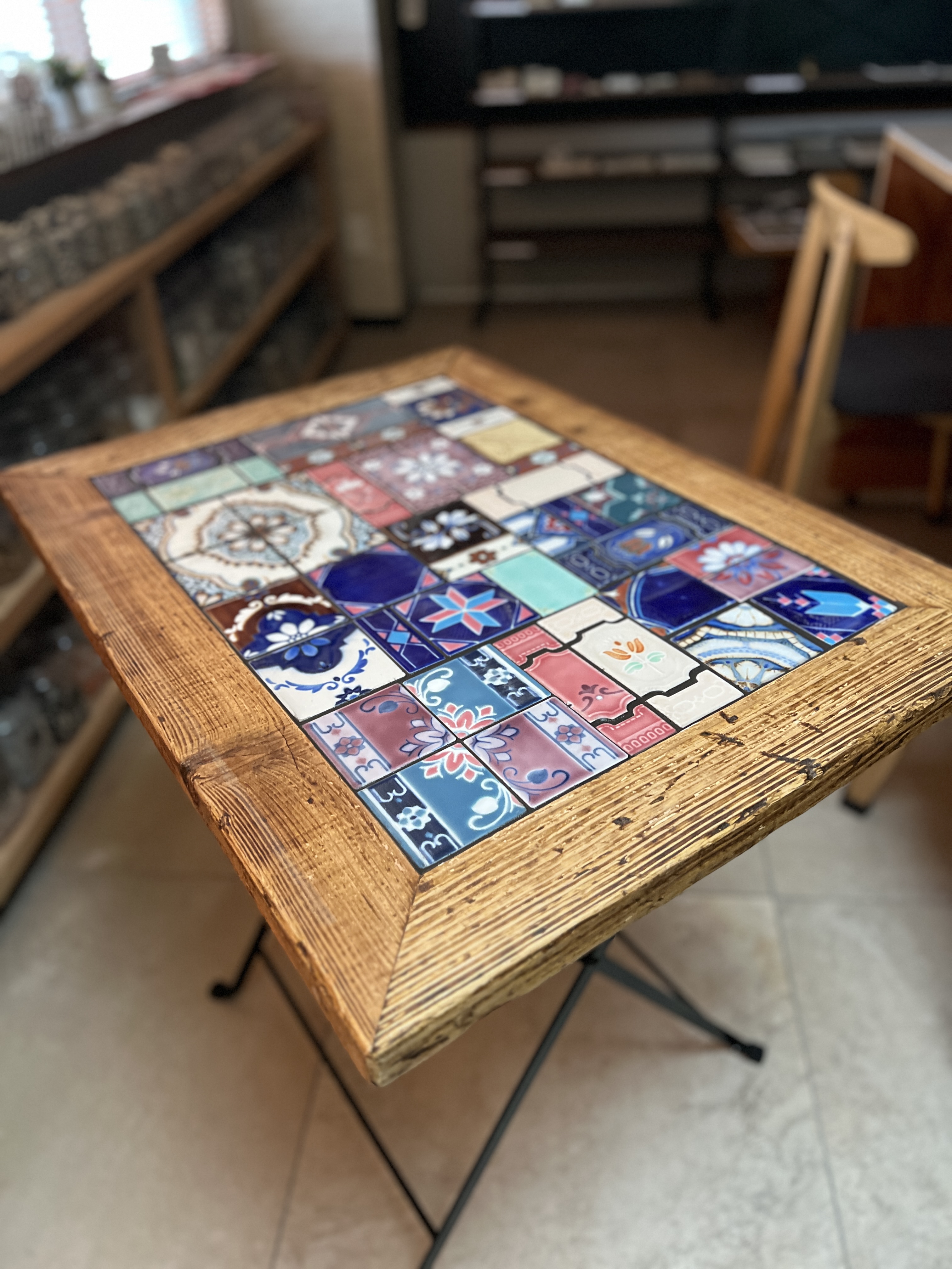 廃材足場板×昭和レトロタイルテーブル(折りたたみ式・超大型)
